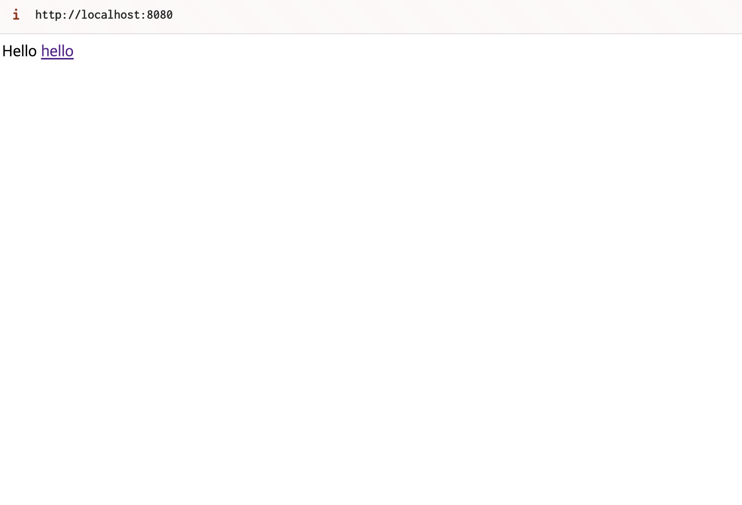 해당 html 코드는 hello 문구를 클릭하면 /hello로 페이지가 이동하는 코드이다. 하지만 아직 /hello 페이지 코드를 작성하지 않아 클릭 시에는 아래와 같이 error 페이지를 반환한다.