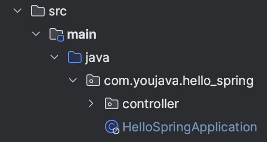 해당 디렉토리에 HelloController.java를 만들어 Controller 역할을 수행하는 클래스를 만든다.