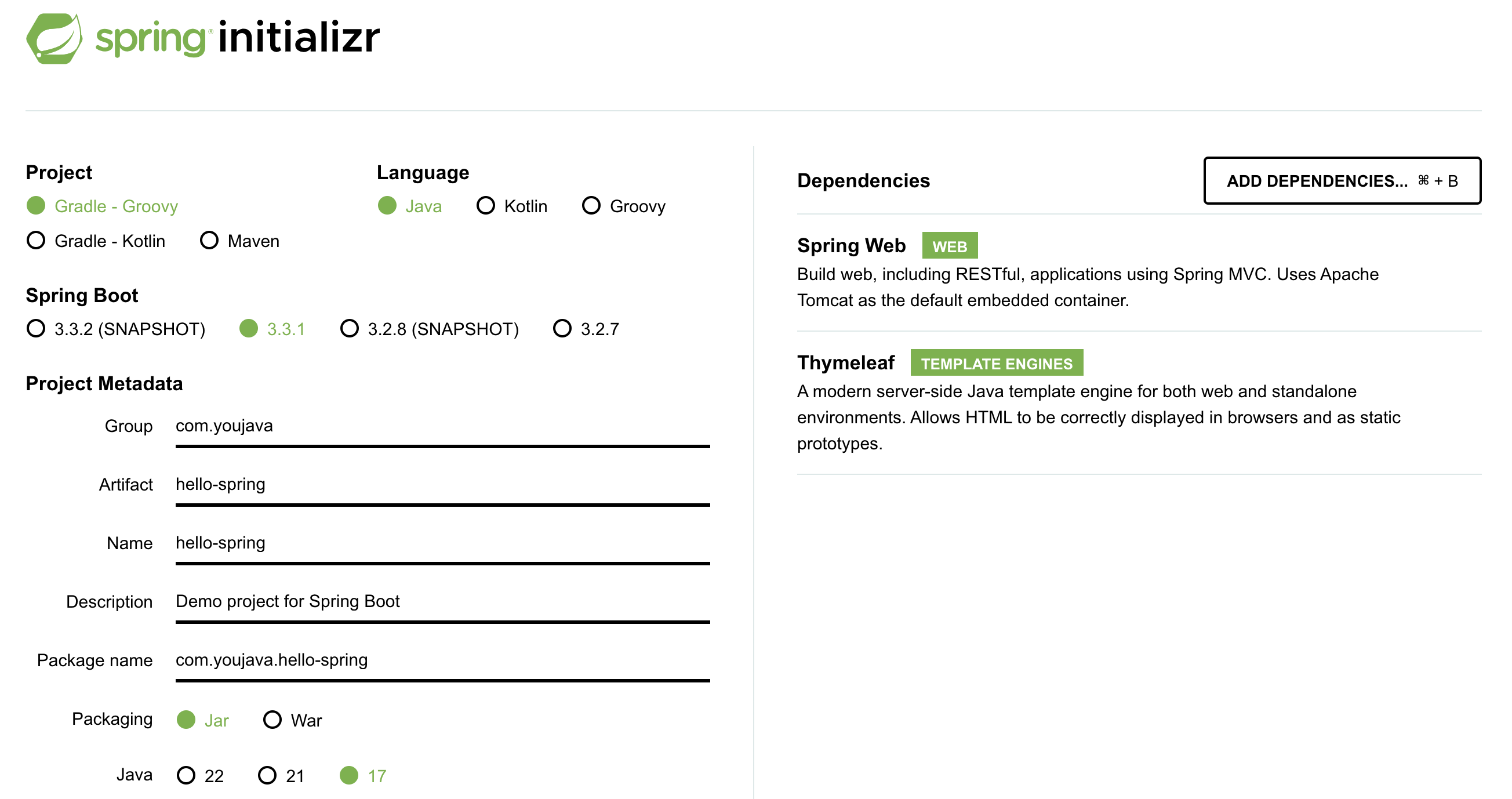 implementation 'org.springframework.boot:spring-boot-starter-thymeleaf'
