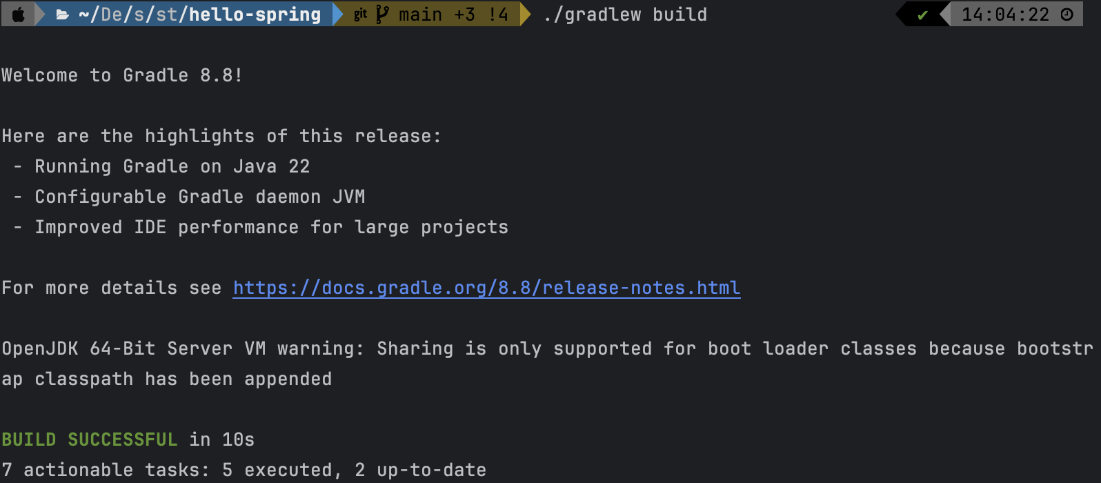 ./gradlew build 시 hello-spring-0.0.1-SNAPSHOT.jar와 hello-spring-0.0.1-SNAPSHOT-plain.jar이 생기는 것을 확인할 수 있다.
