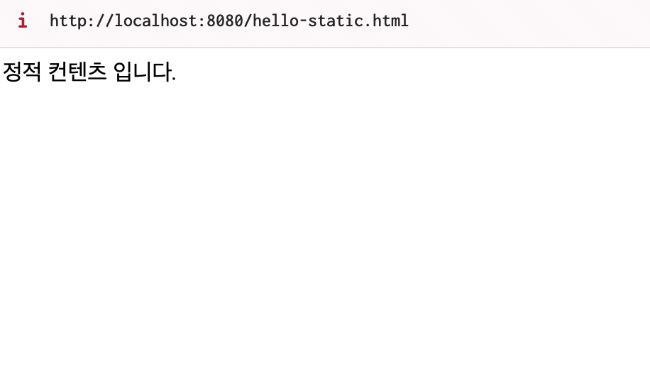 아래와 같이 static 디렉토리 아래 hello-static.html을 작성하고 localhost:8080/[파일명]으로 접근하면 정적 컨텐츠를 확인할 수 있다.
