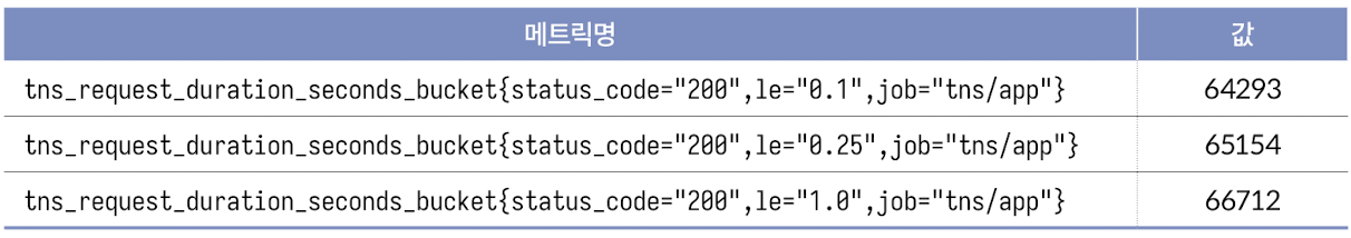 다음과 같은 히스토그램 요구 사항이 있을 때 프로메테우스 표현식으로 나타내보자