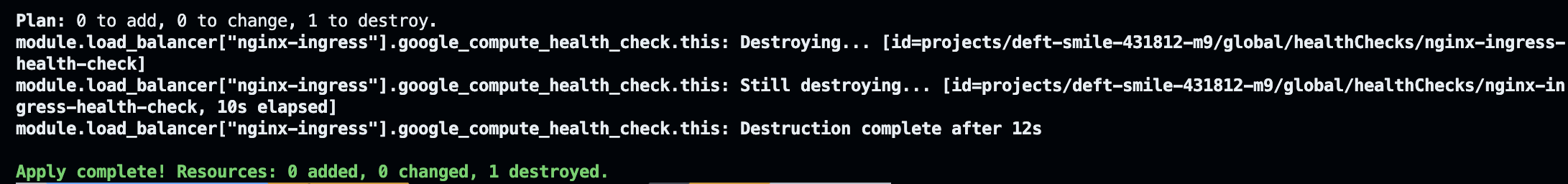 🛠️ 오류 해결 과정 1. 우선 loadbalancer와 관련된 테라폼 코드가 실행되지 않도록 주석처리 후 terraform apply 실행 - 가장 먼저 실행되는 main.tf(../../example/gcp/main.tf)의 loadbalancer 부분 - config.tf(../../example/gcp/config.tf)의 loadbalancer 부분